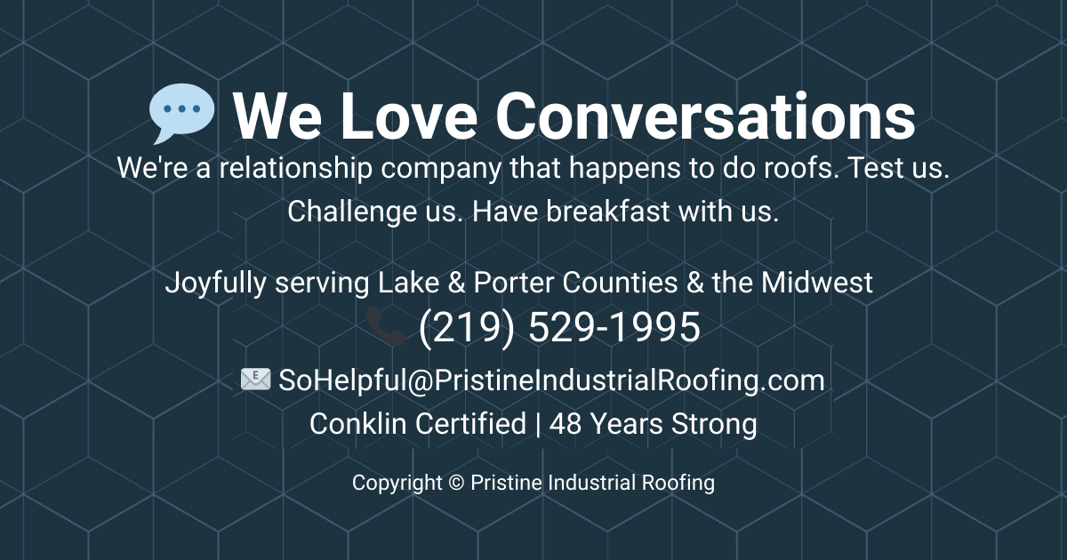 People do not fix their roof because it has a leak. They get their roof looked at to see if they can reduce their NIPSCO. Put an extra coat of insulation on your roof and reduce your NIPSCO by 35%. Literally. We can do that.